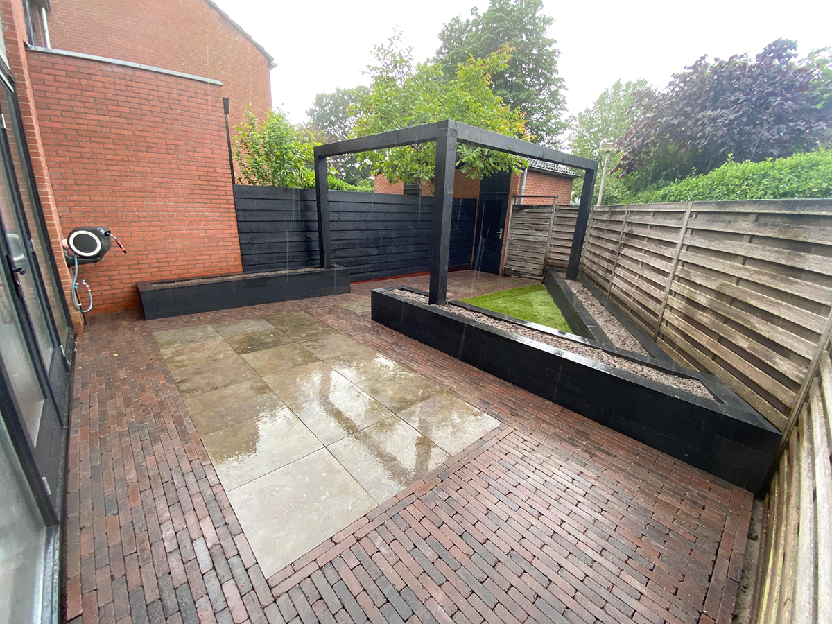 Met Vledder Tuinen werken we niet alleen in de dorpen, ook de steden worden regelmatig bezocht. Deze bijzondere stadstuin in Amersfoort verdiende wel wat aandacht. Het doel: een strakke en kindvriendelijke tuin voor de bewoners. En het resultaat mag er wezen! We pakten het straatwerk aan, legden een gazon aan, nadat we zagen in welke staat hij was, alsnog de schutting. De hoogteverschillen van de borders en de op maat gemaakte, zwarte pergola zorgen voor een eigentijds karakter.